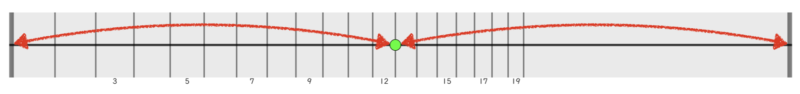 さらに、2等分のハーモニクスと12フレットが被っています↓
