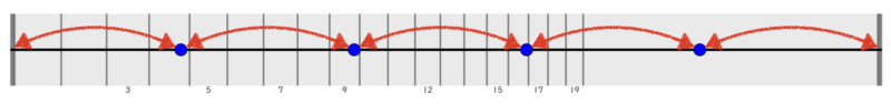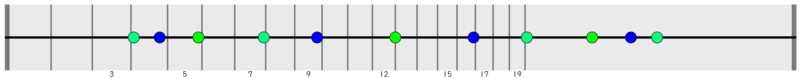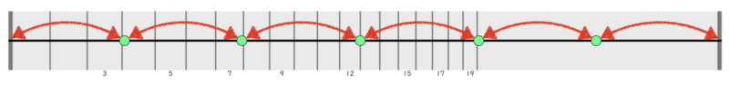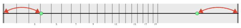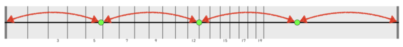 12フレットでは2等分ハーモニクスが鳴るので、4等分ハーモニクスが鳴るのは↓だけです。